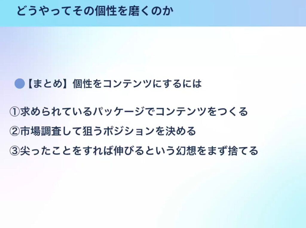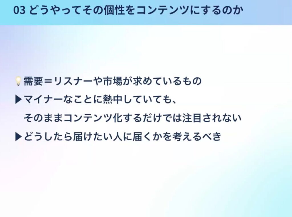 ◇どうやってその個性をコンテンツにするのか