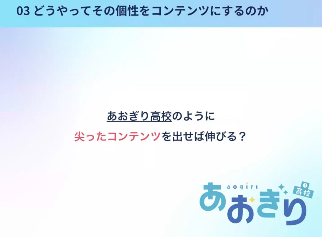 ただ、注意点があります。あおぎり高校のキャッチフレーズに「おもしろければ、何でもあり!」というのがありますが、この主語は「視聴者」になります。