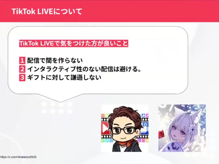 VTuber、Vライバー活動でもっと活躍するチャンスが欲しい方、TikTok LIVEで活動したいけど、今からでも活躍できるのかどうか疑問に思っている方、TikTok LIVEで活躍したいけどなかなかコツが掴めないという方におすすめのウェビナーとなっておりました。