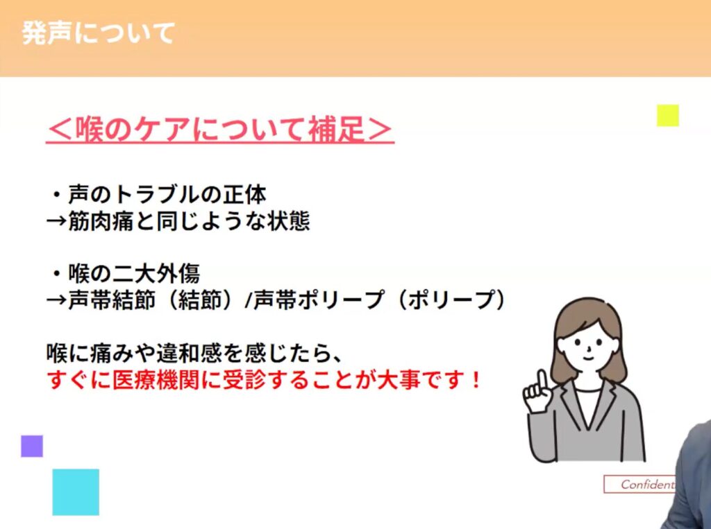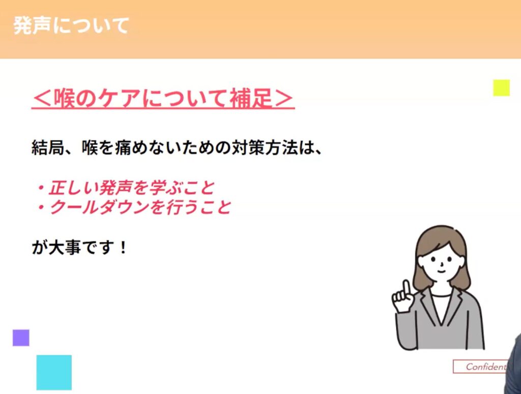 正しい発声を学ぶことに加えて、クールダウンも大切ですね。