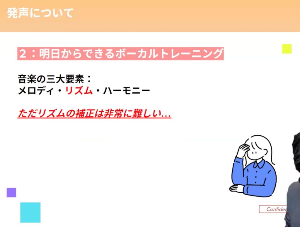 メロディーやハモリはある程度補正ができますが、リズムの補正は非常に難しいです。よって、リズムを意識するだけでも歌が上手く聞こえるようになります。