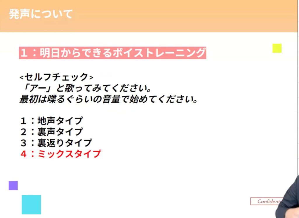 声の出し方は人によって大きく4つのタイプに分かれているので、ただ同じレッスンをやっても改善する人と逆に悪化する人に分かれます。