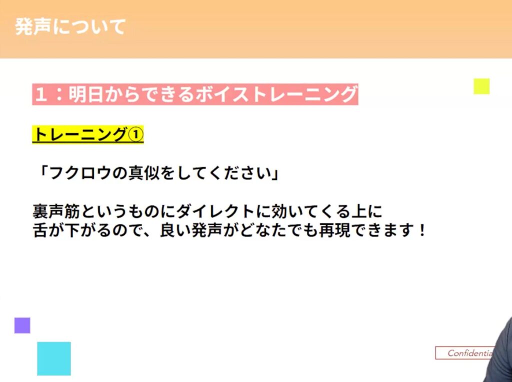 これらの要素をそれぞれ独立してトレーニングすることで、理想とする声に近づくことができると考えています。