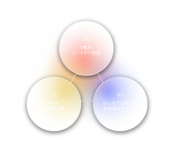 KANAIを中心に、業界内で培った広範なネットワークを活かし、業界のトップクリエイターや企業と共にあなたをサポート。VTuber、Vライバーとしての活動を次のレベルへと引き上げます。