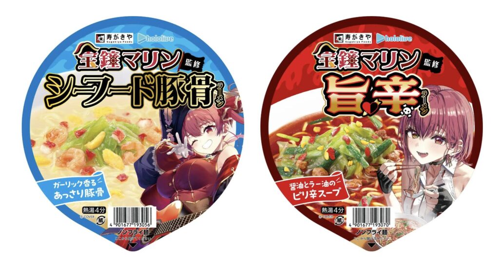 「寿がきや食品株式会社」とコラボし、ホロライブプロダクション所属VTuber「宝鐘マリン」監修のカップ麺が登場しました。