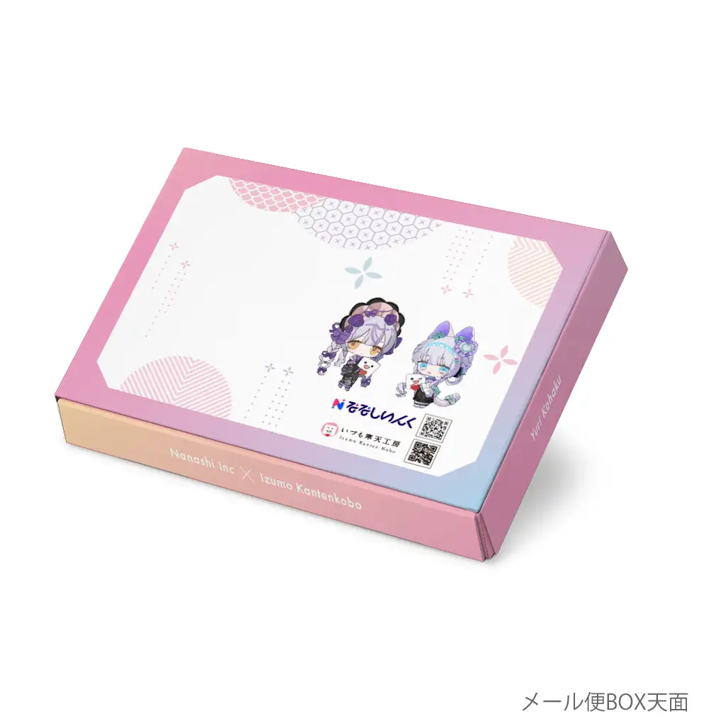 いづも寒天工房の代表商品をベースに、ななしいんく所属のVTuber「杏戸ゆげ」「琥珀」が自らの好みや個性を反映し、共同開発した限定コラボお菓子を販売。加えてそれを限定アクリルスタンドとセットで、完全オリジナルパッケージにてお届けしました。