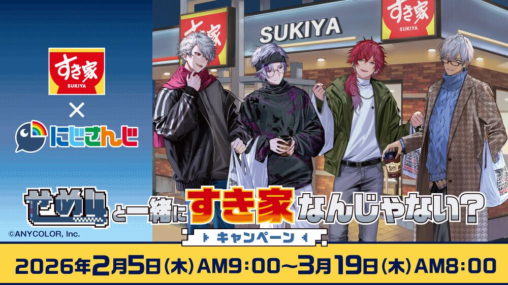 牛丼チェーン店「すき家」と、VTuberグループ「にじさんじ」がコラボを実施。