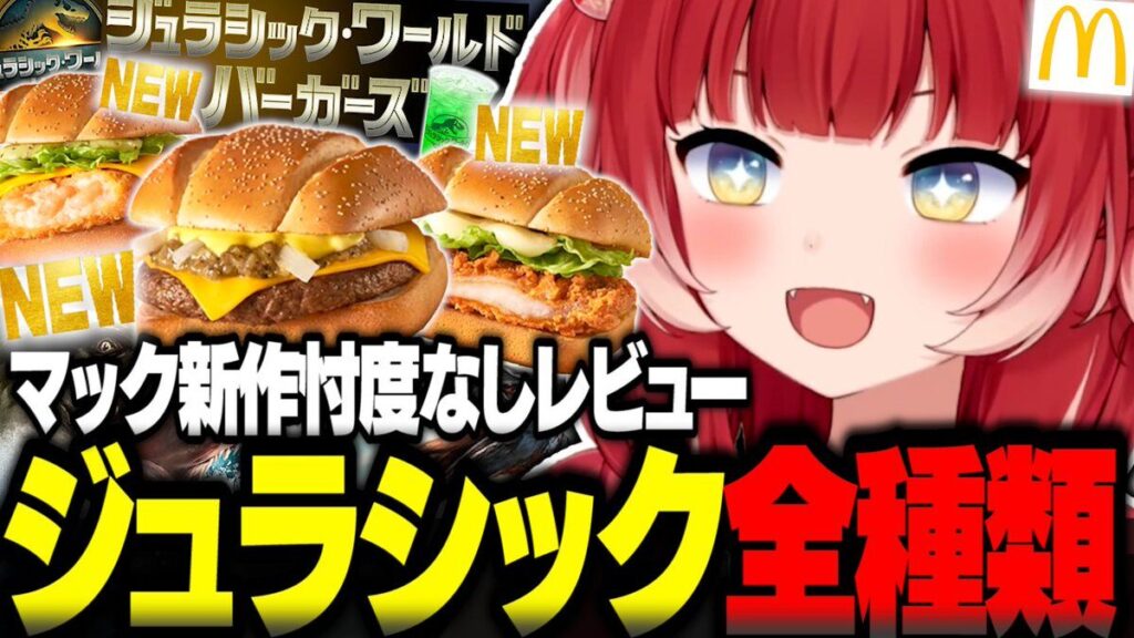 「ジュラシックワールド バーガーズ」のPR動画に赤見かるびが出演したり、生配信内で商品を紹介したりして、「ジュラシックワールド バーガーズ」のPRに繋げました。