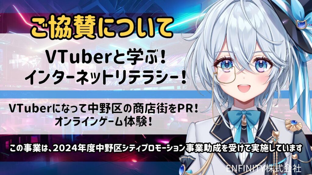 VTuberグループ「ステラリウム」を運営するENFINITY株式会社が、東京都中野区の助成を受けてインターネットリテラシーの講義を実施しました。