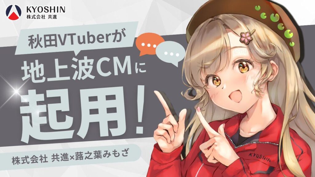 秋田県の製造業企業「株式会社共進」は、秋田のご当地VTuber「蕗之葉みもざ」を起用しCMを制作し、地上波で放映を行いました。