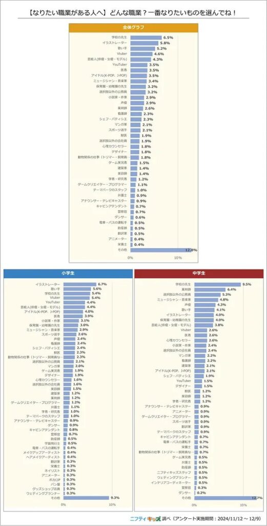 さらに、VTuberのコンテンツ視聴時間はまだまだ伸び続けており、小学生がなりたいランキング4位に「VTuber」が入るなどまだまだ成長していくことが見込まれています。VTuber業界もここから拡大していくことで、募集される仕事が増えていく可能性が高いです。